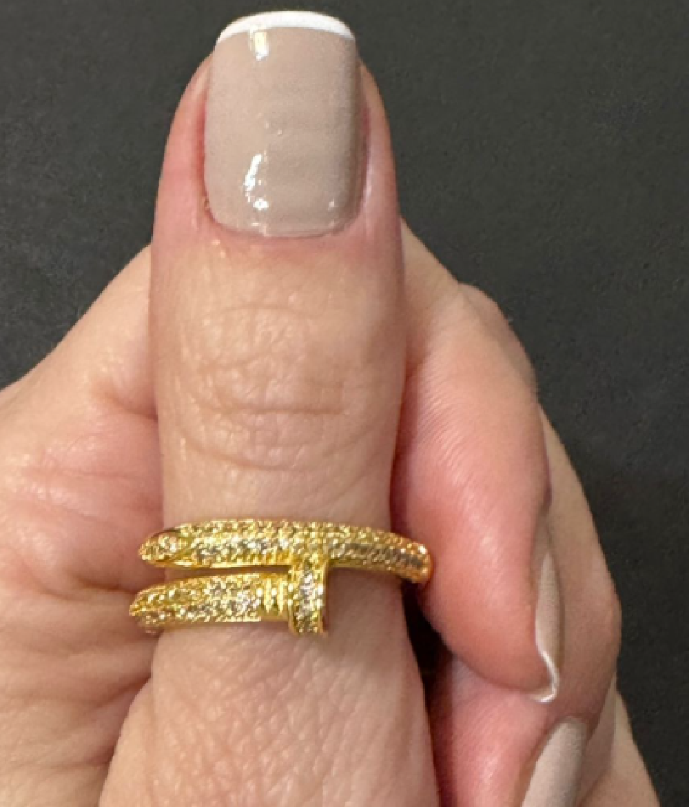 Anel em metal com banho variado e cravações de zircônias.