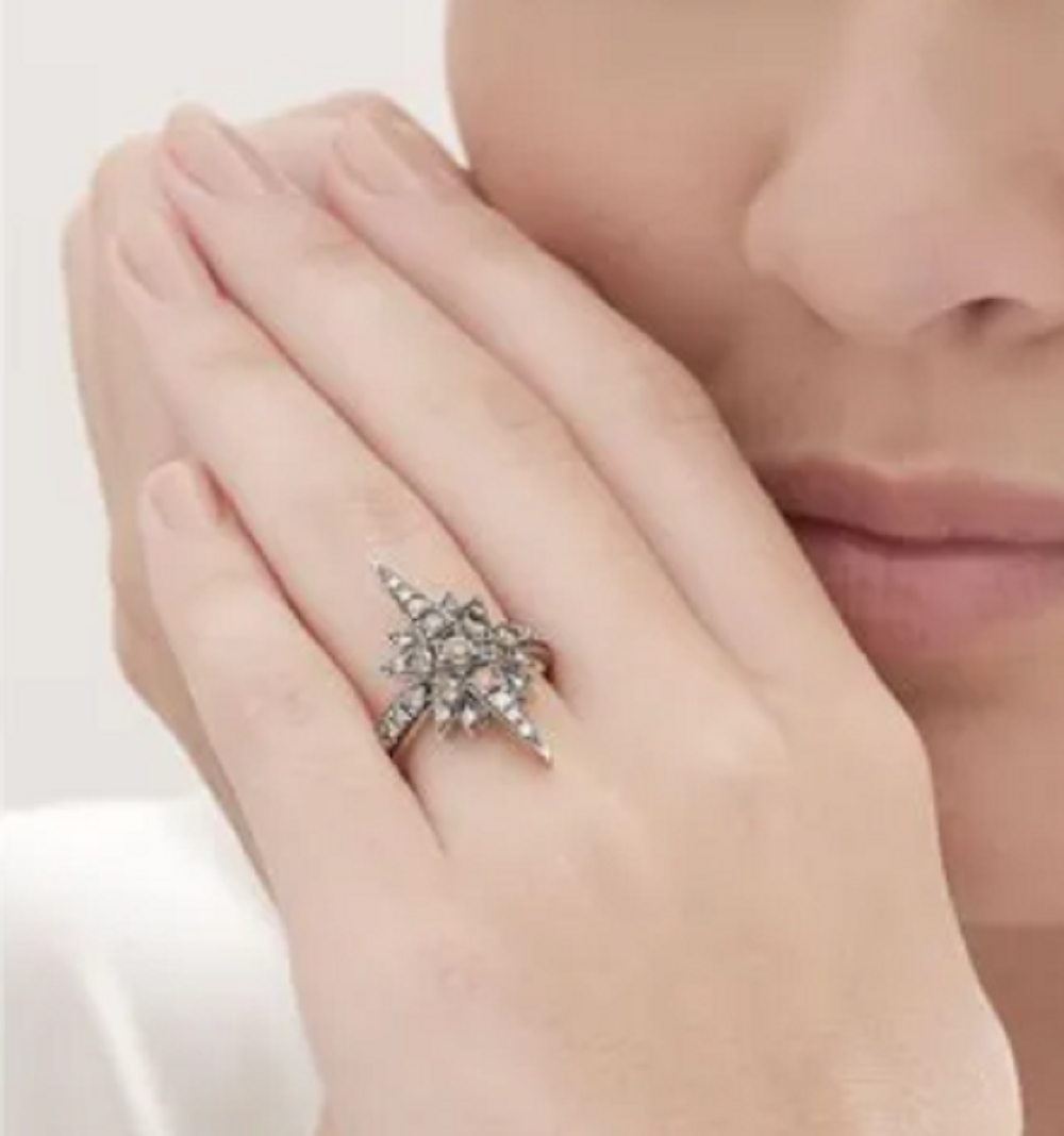 Anel em metal com banho de rodium branco, cravejado de zircônias na cor marrom.