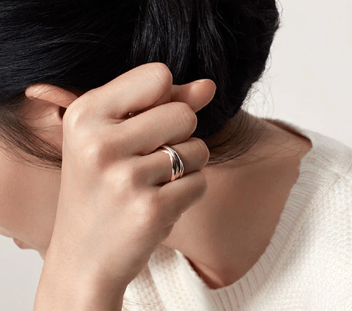 Peça inspiração de grandes marcas. São 3 alianças em metal banhadas em rodium, ouro amarelo e rosê.