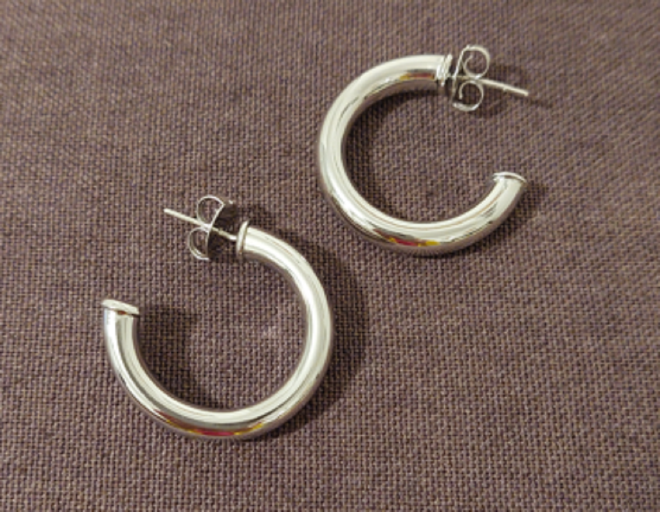 Brinco de argola liso, tamanho médio, com espessura larga.