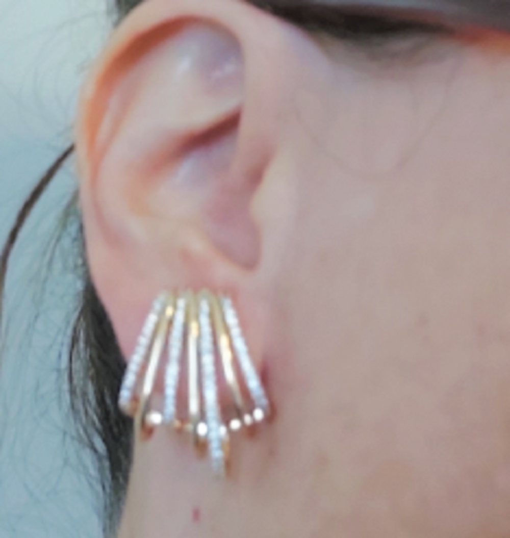 Brincos com detalhes tipo angulares, com detalhes cravejados em microzircônias.