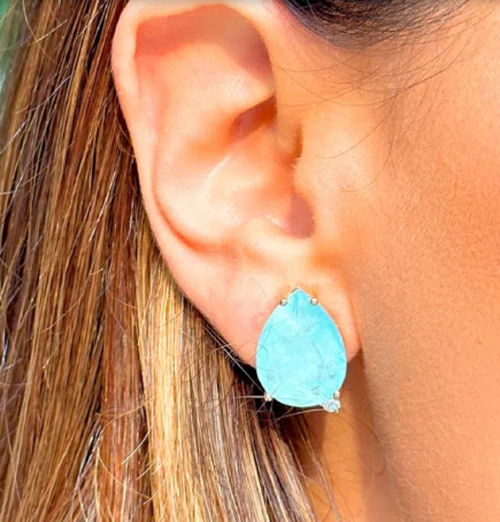 Par de brincos com pedras em formato de gota, de Turmalina Light fusion.