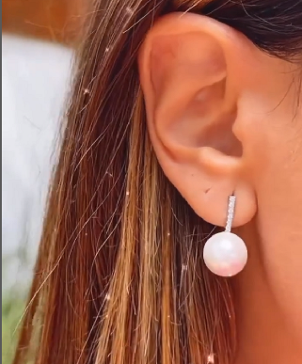 Brinco em prata 925, com detalhes cravejados em zircônias e pérolas tipo shell.