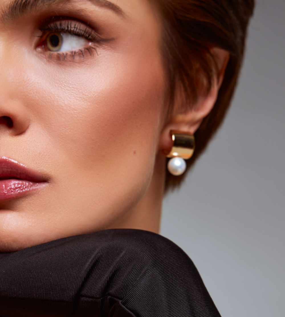 Brinco estilo argola, com pingente fixo de pérola de Shell