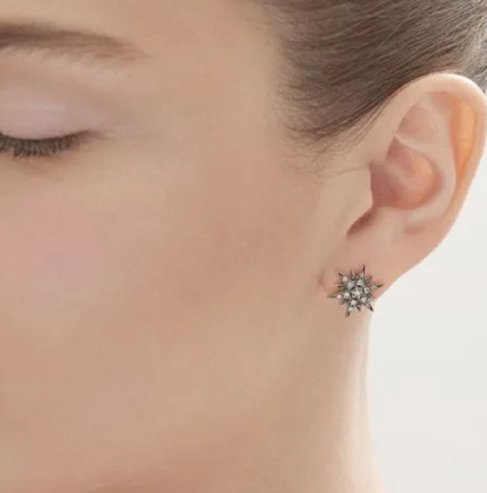 Brinco em formato de estrela, com cravações em zircônias em tons marrons.