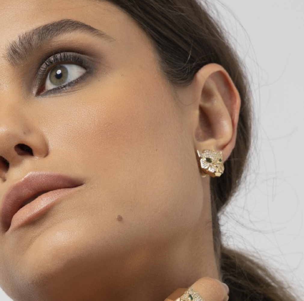 Possui cravações de zircônias brancas e verdes (nos olhos).