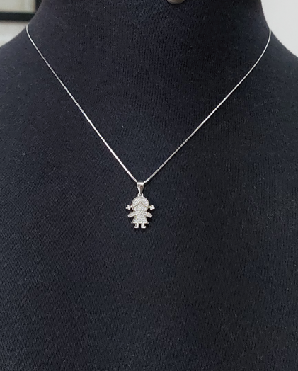 Pingente com banho de rodium e cravejado de zircônias brancas.Medidas: 1,5 cm x 1,0 cm e corrente tipo veneziana.