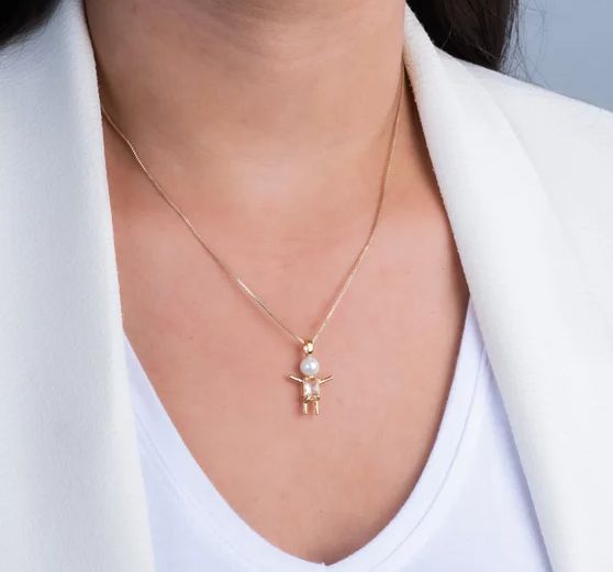Colar com pingente tipo palito, de menino.