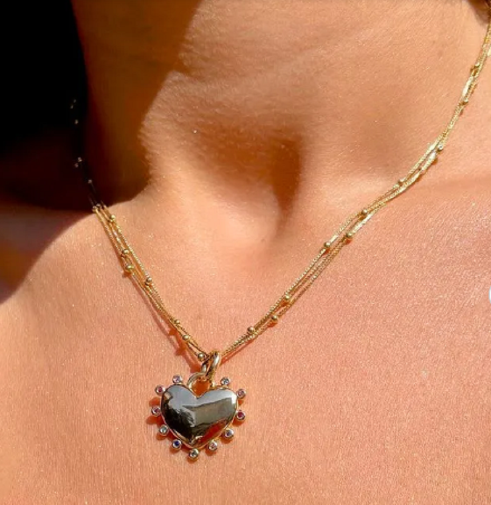 Colar com pingente banhado a ouro, com detalhes de zircônias.