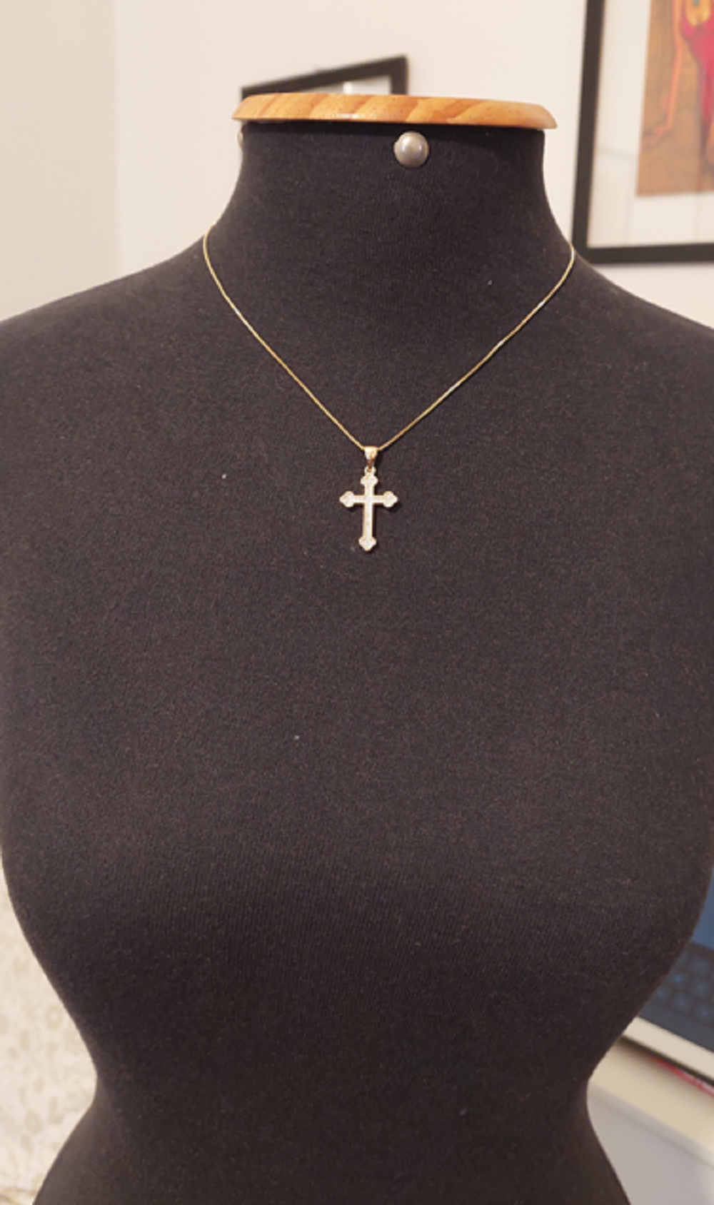Colar estilo corrente veneziana, com pingente de cruz colonial, com zircônias cravadas