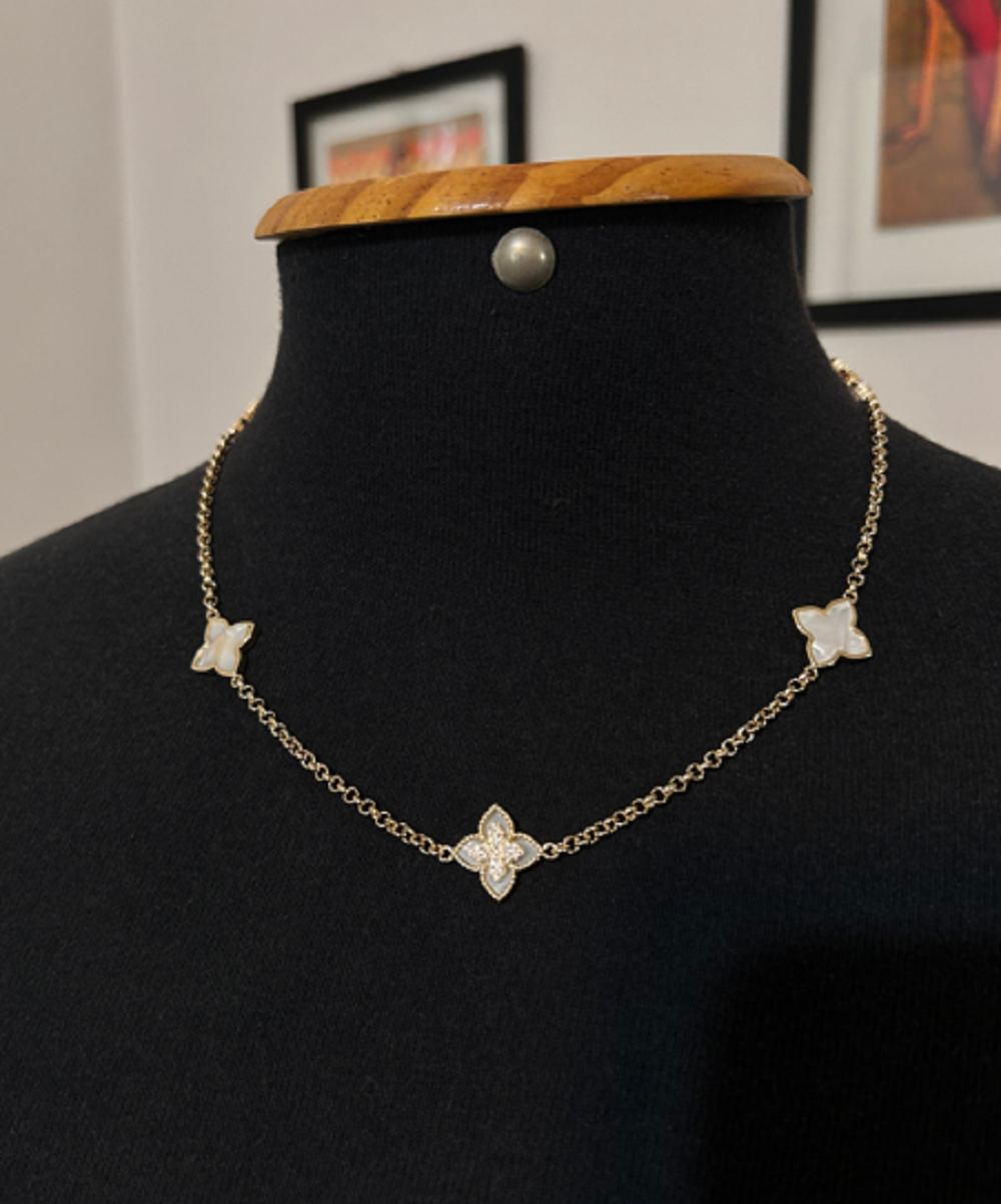 Colar inspiração de grandes marcas internacionais. Sendo detalhes estilo de trevo de 4 folhas, padrão da VC&A