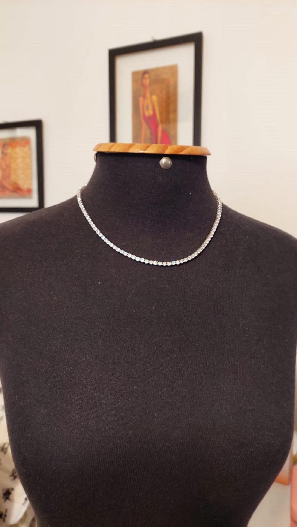 Colar estilo riviera, com zircônias. Peça em metal com banho de rodium, fecho tipo gaveta.