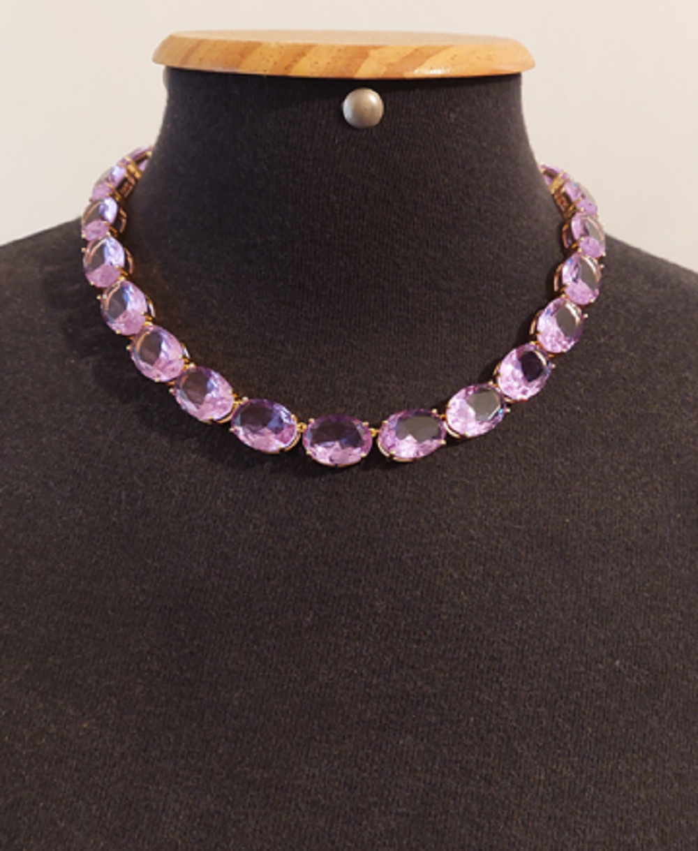 Conjunto de colar e brincos de cristais sintéticos de ametista.