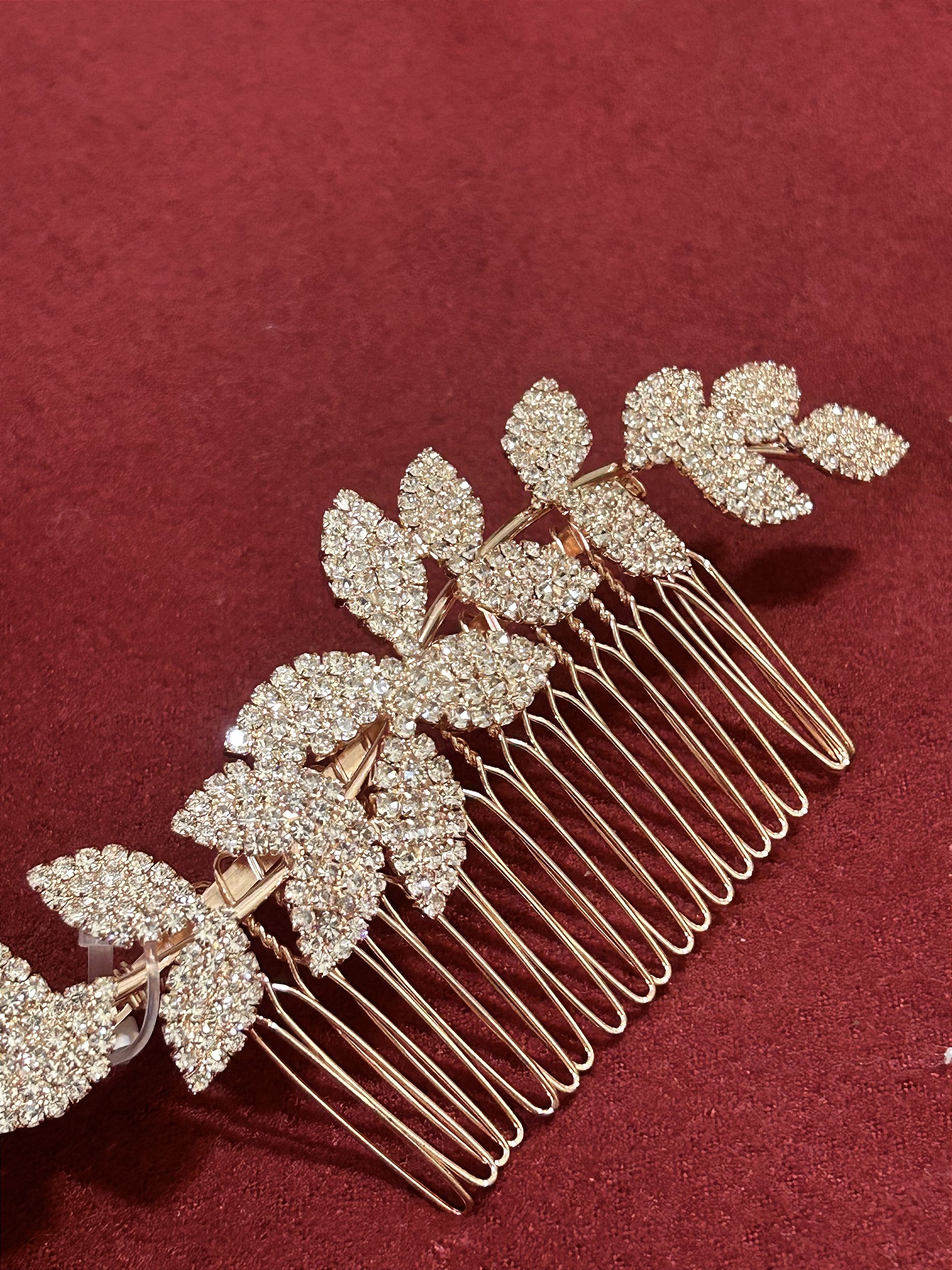 Pente com detalhes em ramos, com detalhes em cristais colados.