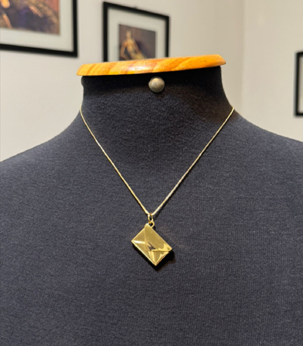 Colar com pingente em formato de envelope.
