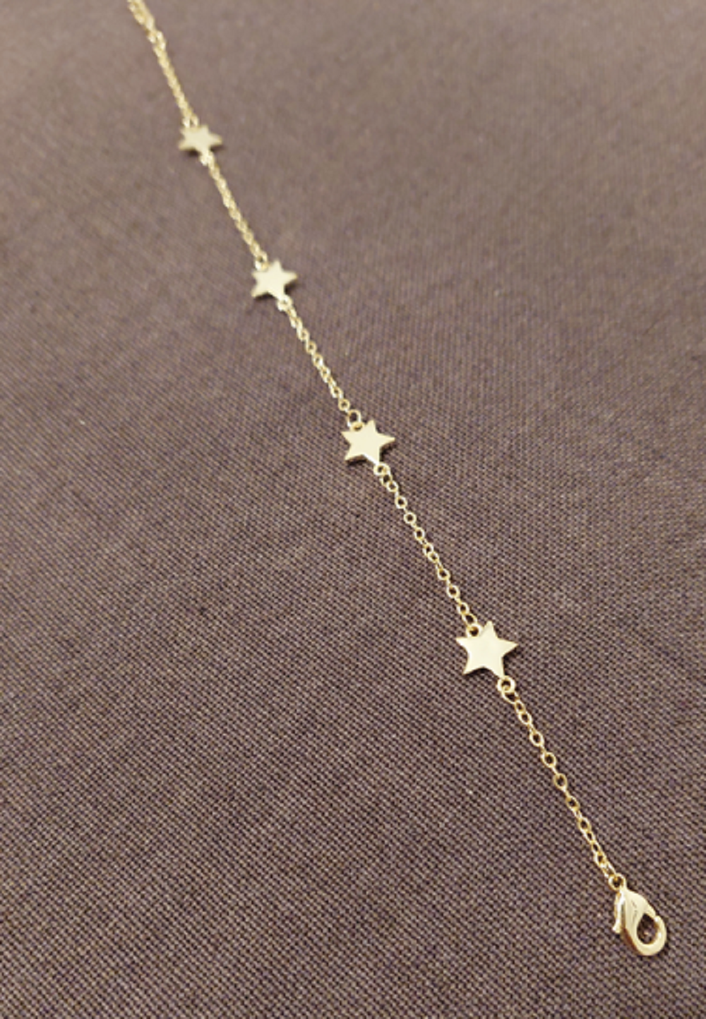 Pulseira clássica, fina, com pingentes delicados de estrelas lisas.