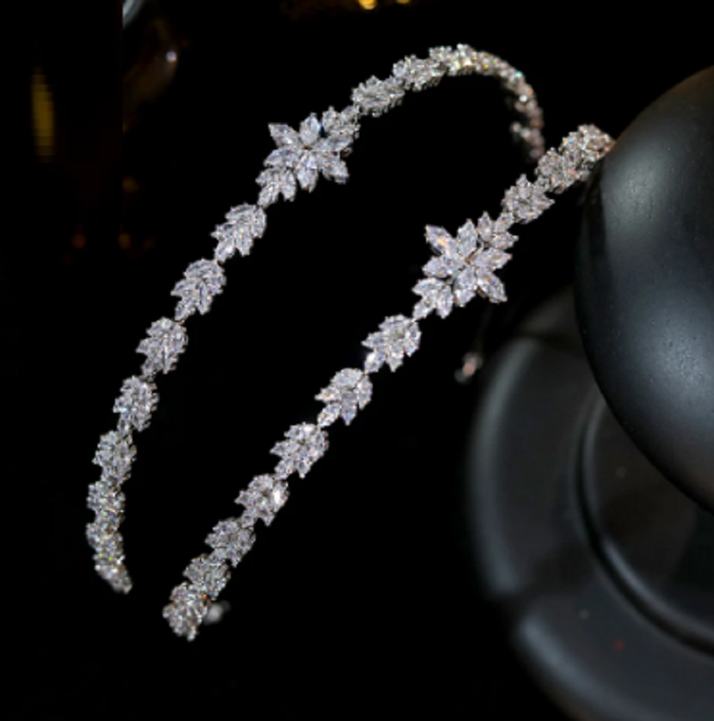 Tiara Dupla, semijoia, metal banhado a rodium. Cravejada com zircônias transparentes.